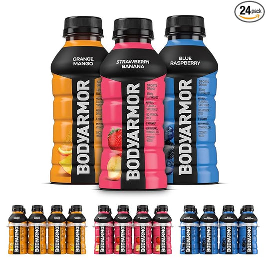 BODYARMOR Sports Drink Variety Pack, Coconut Water Hydration, Natural Flavors w Vitamins, Potassium Packed Electrolytes For Athletes, Strawberry Banana, Blue Raspberry, Orange Mango, 12 Oz - 24 pack
