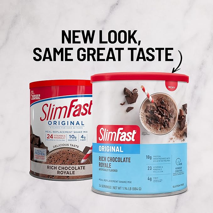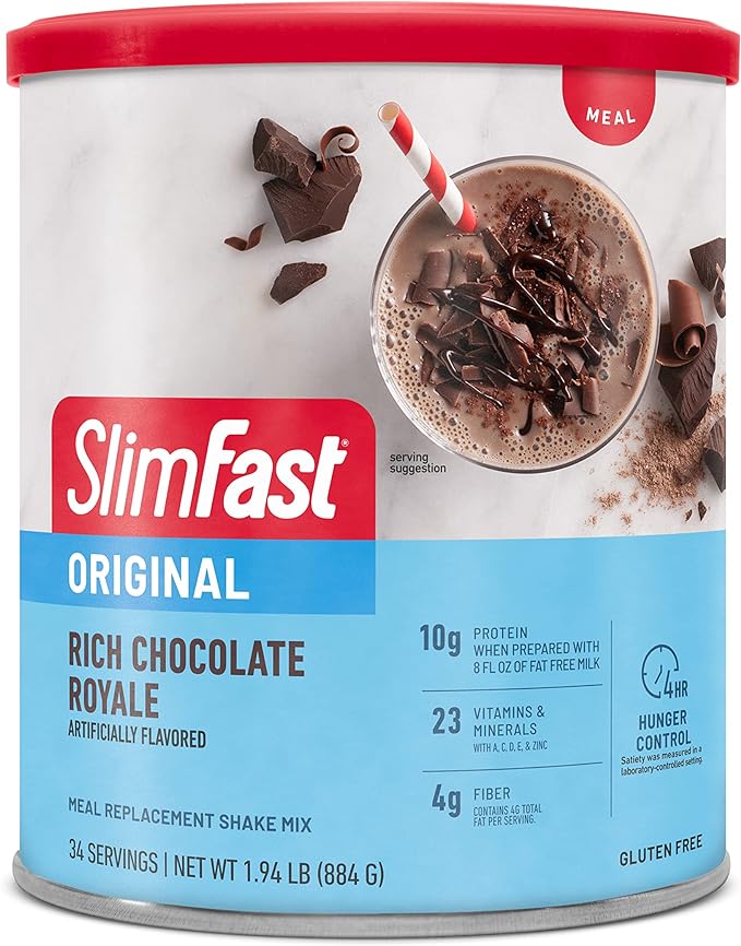 SlimFast Original Meal Replacement Powder, Rich Chocolate Royale, Weight Loss Shake Mix, 10g of Protein, 34 Servings (Packaging May Vary)