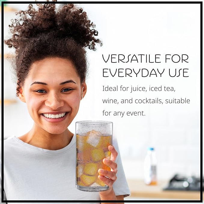 - Versatile for Everyday Use: Whether it's a morning pick-me-up with fresh squeeze juice, an afternoon refreshment of iced tea, an evening with a glass of wine, or a celebration with champagne, these glassware pieces cater to a diverse array of beverages. Whether enjoying a casual breakfast or hosting a dinner party with cocktails, these versatile glassware items seamlessly transition between drink types and occasions.