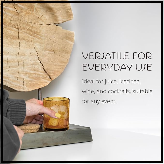 Artland 14oz Double Old Fashion Glass, Set of 4 | Iris Seeded Design, Amber | Drinking Glass for Parties and Everyday Use - Mojito, Whiskey, Cocktail | Glassware & Barware Essentials