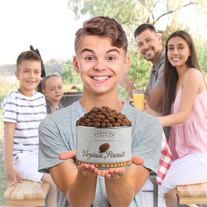 FERIDIES Honey Roasted Extra Large Giant Virginia Peanuts, 18oz Vacuum Can, Gourmet Snack 18oz (Pack of 1)