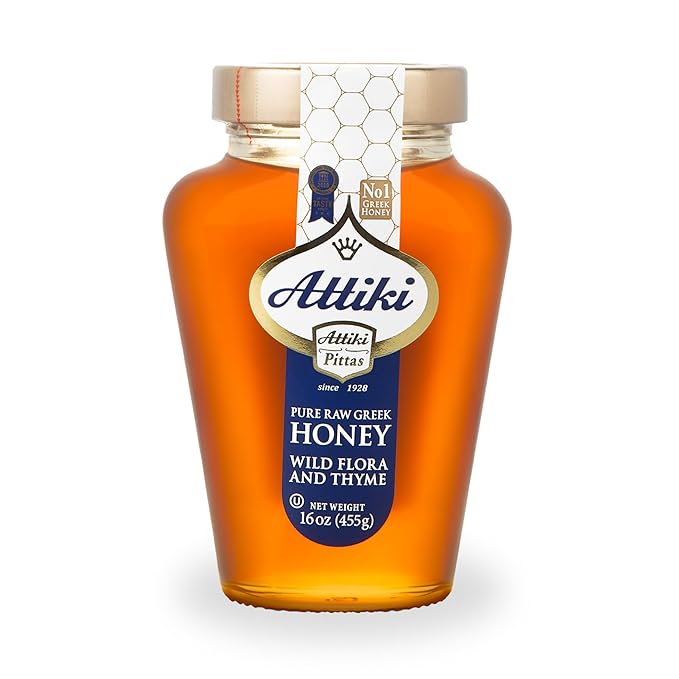 Attiki Pure Greek Honey with Wild Flora and Thyme, Perfect for Baking, Cooking, Lemonade and Tea, 16 oz (453 grams), Glass Jar