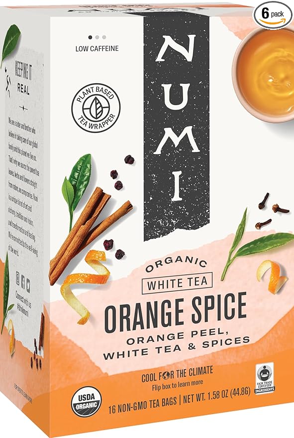 Numi Organic Tea Orange Spice, 16 Count Box of Tea Bags (Pack of 6), White Tea