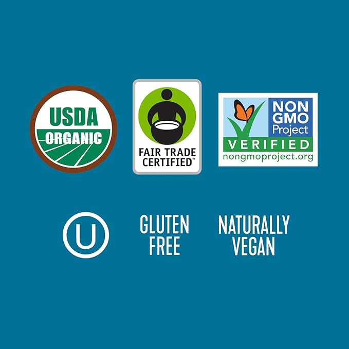 - CERTIFIABLE QUALITY: USDA Organic, Fair Trade Certified, Non-GMO Project Verified, Kosher Certified, Gluten Free, and Vegan