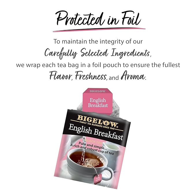- Individually Wrapped: Bigelow Tea always come individually wrapped in foil pouches for peak flavor, freshness and aroma to enjoy everywhere you go! Gluten-free, calorie-free, and Kosher Certified