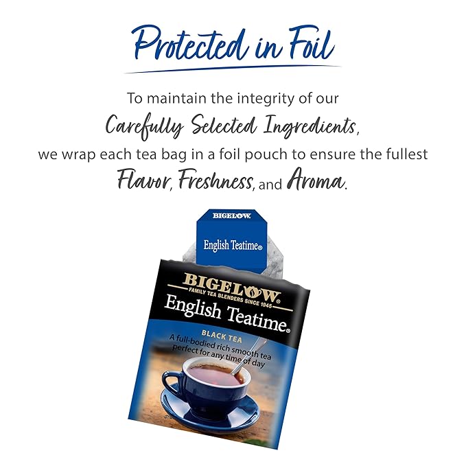 - Individually Wrapped: Bigelow Tea always come individually wrapped in foil pouches for peak flavor, freshness and aroma to enjoy everywhere you go; Gluten-free, calorie-free, and Kosher Certified
