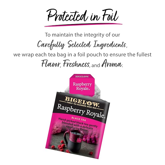 - Individually Wrapped: Bigelow Tea always come individually wrapped in foil pouches for peak flavor, freshness and aroma to enjoy everywhere you go! Gluten-free, calorie-free, and Kosher Certified