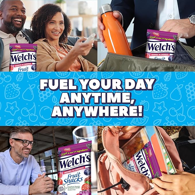 - 12 CT SNACK BOX - Contains 12Ct of 5oz Snack Packs of Welch's Fruit Snacks in delicious Berries 'N Cherries flavor
