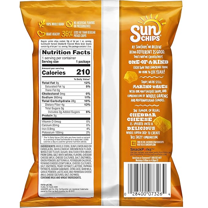 SunChips Harvest Cheddar Flavored Multigrain Snacks, 1.5-Ounce (Pack of 64)