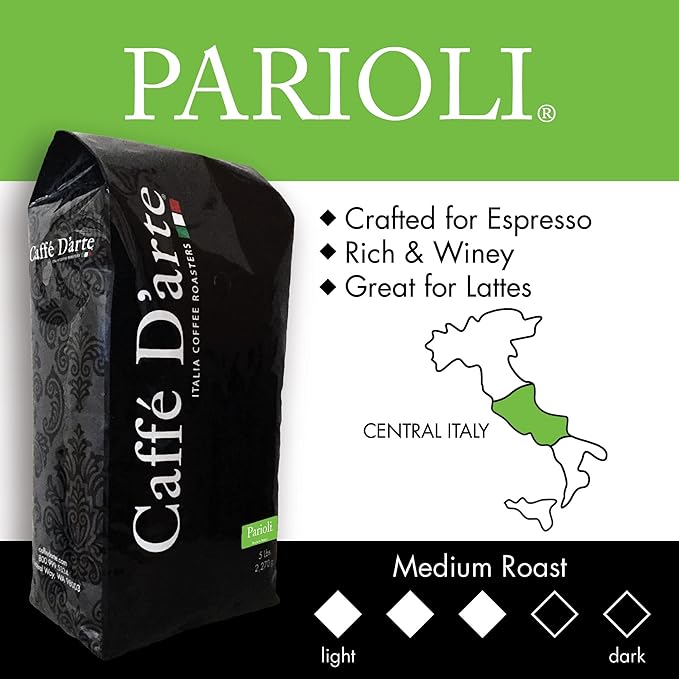Caffe D'arte Parioli Whole Bean Espresso Coffee, 5 Pounds