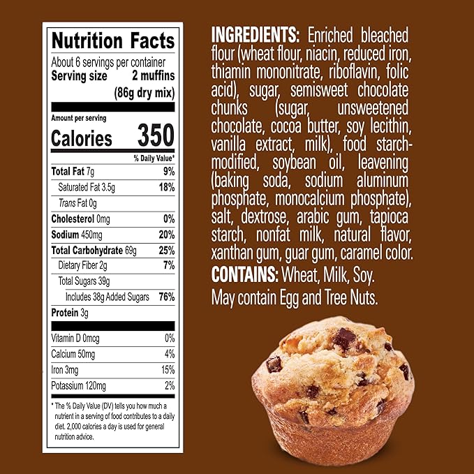 - INGREDIENTS WE’RE PROUD OF: Krusteaz Chocolate Chunk Muffin Mix is made with real chocolate chunks and no artificial flavors or preservatives.
