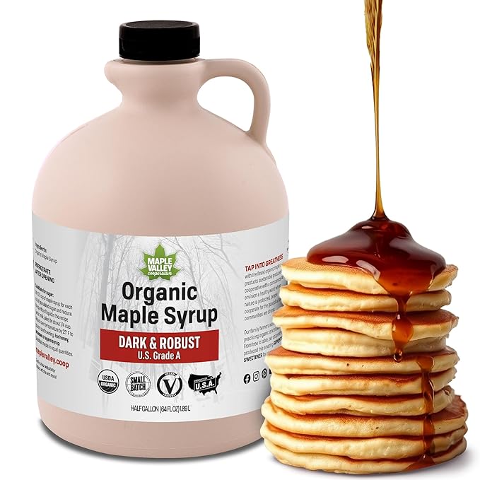 Maple Valley Organic Pure Maple Syrup, Dark & Robust Better Than Pancake Syrup, Use for Coffee or All-Natural Sugar Substitute in Cooking and Baking (64oz Plastic Jug)