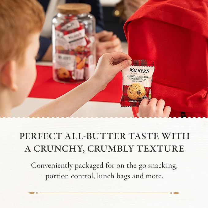 Walker's Shortbread Chocolate Chip Cookies, All-Butter Shortbread Cookies, 1.4 Oz Snack Packs (Pack of 20)