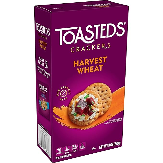 - Includes 6, 8oz boxes containing Toasteds Harvest Wheat crackers; Packaged for freshness and great taste