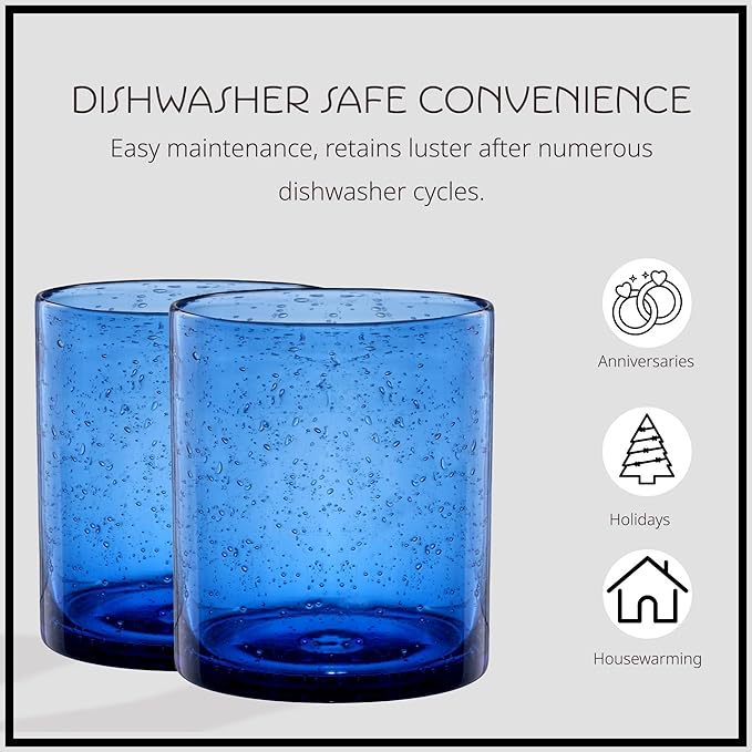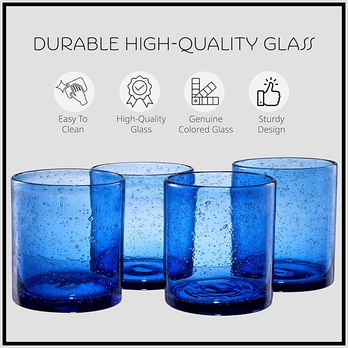 Artland 14oz Double Old Fashion Glass, Set of 4 | Iris Seeded Design, Cobalt Blue | Drinking Glass for Parties and Everyday Use - Mojito, Whiskey, Cocktail | Glassware & Barware Essentials