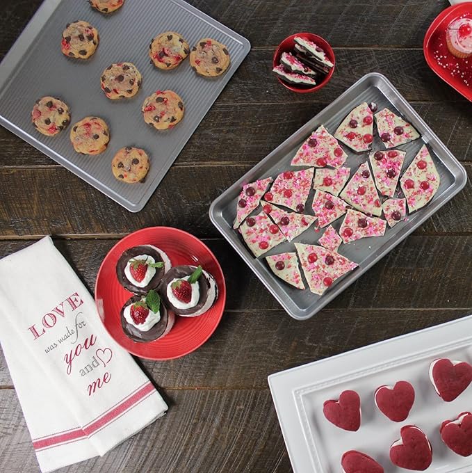- 3 piece bakeware set includes: 17 x 12. 25 inch cookie sheet, 12. 5 x 9 inch quarter sheet pan and 17. 25 x 12. 25 inch half sheet baking pan