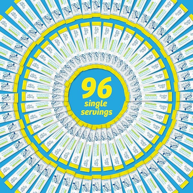- 96 TOTAL SERVINGS: Each case contains 12 boxes of Wyler’s Light, each box has 8 tasty packets of Wyler’s Light Lemonade water enhancer giving you a total of 96 refreshing single servings.