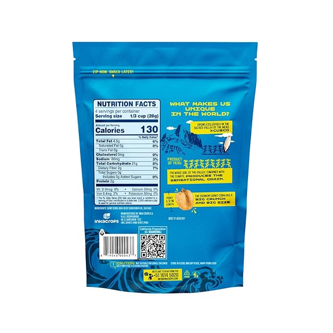 - No Artificial Additives: Inka Corn Nuts are crafted without artificial flavors, colors, or preservatives, delivering a pure and wholesome snacking experience.