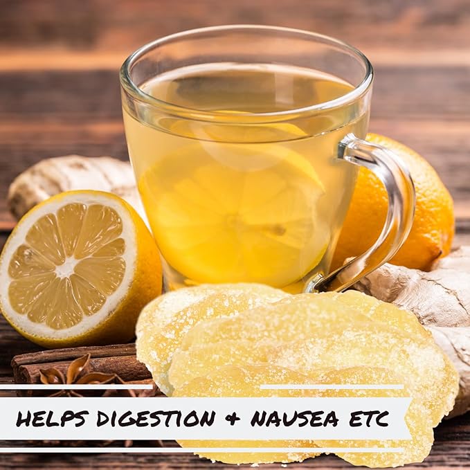 - Candied Ginger – Candied ginger slices are awesome for snacks, cooking, baking ginger cookies and cup of tea with lemon, chewy sweet and spicy after-dinner treat.