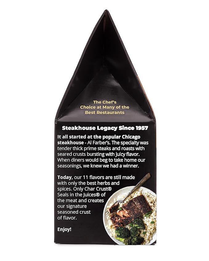 - Dry-rub seasoning for all meat, fish and vegetables, only Char Crust Seals in the Juices