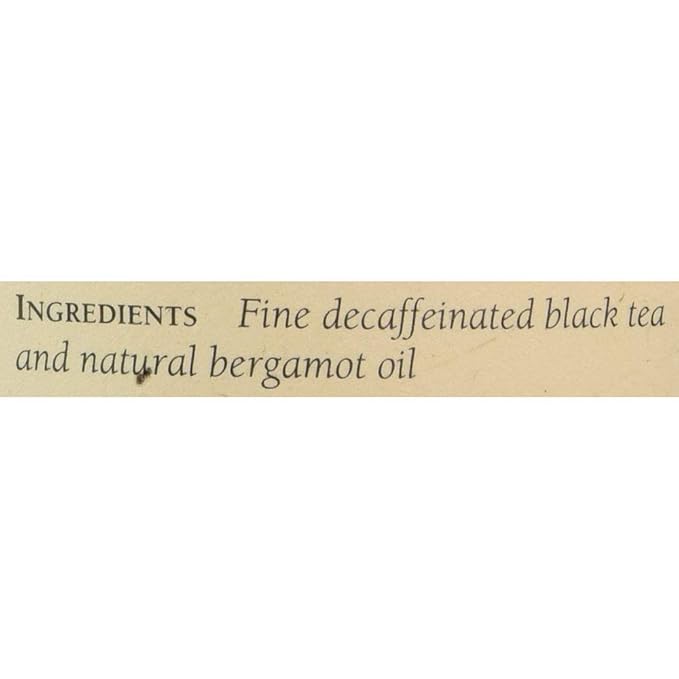 - Ingredients: Decaffeinated black tea and natural bergamot oil