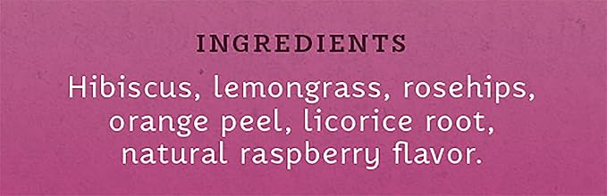- Wild Raspberry Hibiscus Herbal Tea: This bright, tangy herbal tisane features a blend of hibiscus, lemongrass, rosehips, orange peel, licorice root, and natural raspberry flavor; Delicious hot or iced