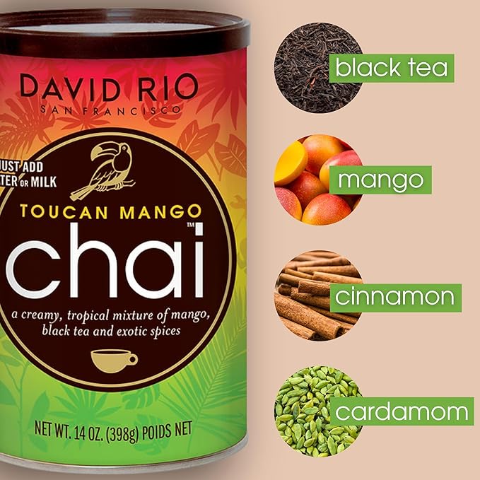 - Bold and Flavorful: Toucan Mango Chai is a creamy tropical mixture of mango, black tea and premium spices, like cinnamon and cardamom, so delicious and refreshing, especially when iced