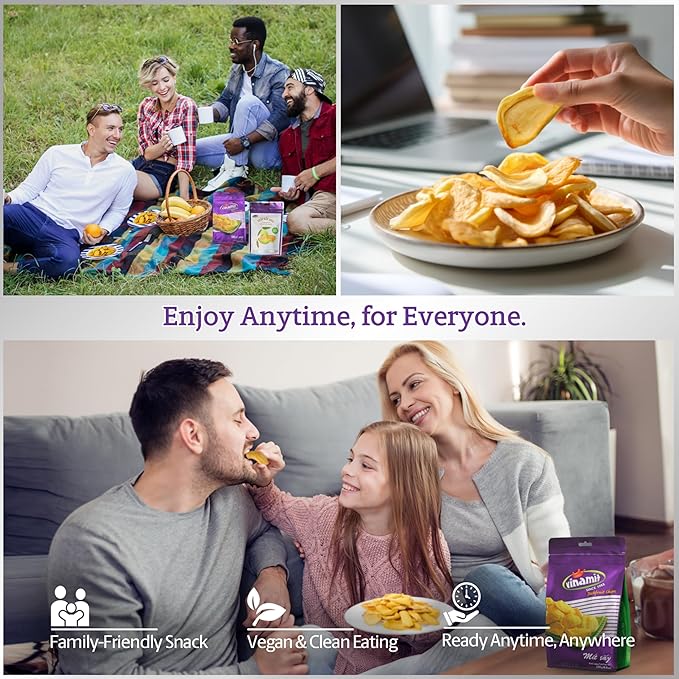 - LONG SHELF LIFE AND TRAVEL-FRIENDLY: Ripened jackfruit chips stay fresh for long time at room temp. Great for camping, picnic, road trips, movie nights, lunchboxes, or work breaks—anytime you need a satisfying, shelf-stable fruit snack.