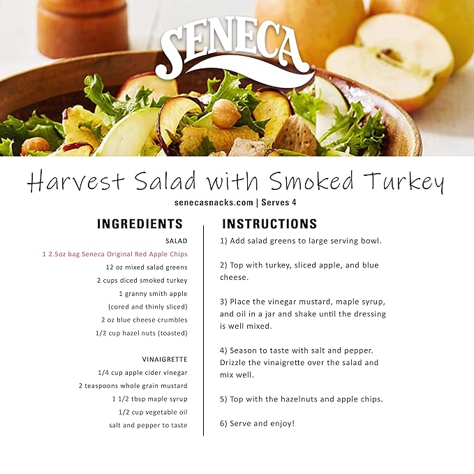 - FRUIT SNACKS | SALAD TOPPER: Seneca Original Apple Chips bring delicious, sweet and juicy Red Delicious apple flavor to fruit chip snacking. Crunchy apple goodness for snacking at home, school, work or on the go - or as a favorite salad topper!