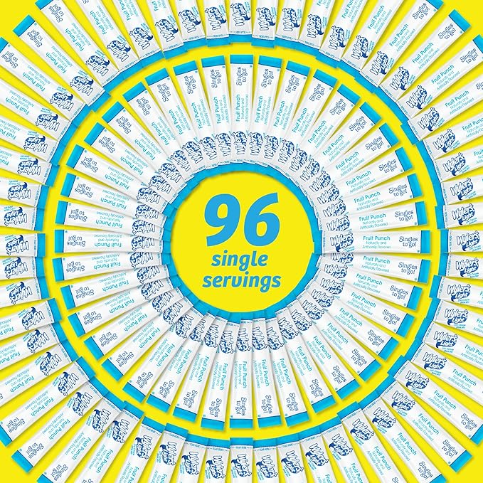 - 96 TOTAL SERVINGS: Each case contains 12 boxes of Wyler’s Light, each box has 8 tasty packets of Wyler’s Light Fruit Punch water enhancer giving you a total of 96 refreshing single servings.