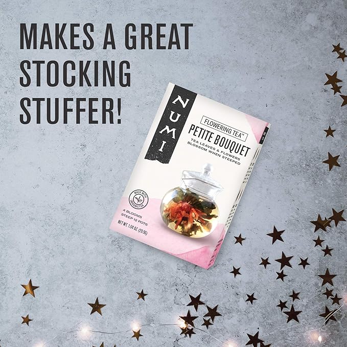 Numi Organic Tea Petite Bouquet 4-Variety Flowering Tea Blossoms, Blooming Tea Flowers, Steeps 12 Pots