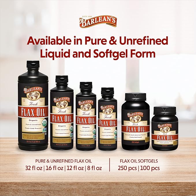 - PURE & UNREFINED: Barlean's lignan flax oil is cold pressed without the use of heat or solvents. Each drop is protected from damaging heat and light from seed to bottle, offering a healthy balance of Omegas 3, 6, and 9; 100% non-GMO and gluten-free