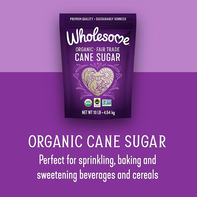 Wholesome Sweeteners 10-Pound Organic Cane Sugar, Fair Trade, Non GMO, Gluten Free, Pure & Vegan, for Baking and Sweetening