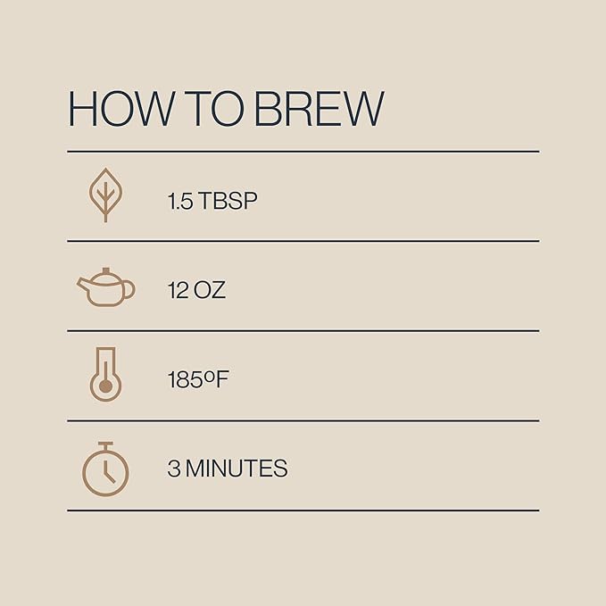 - Savor & Enjoy - Mix 1.5 tbsp, 12 oz water in a teapot. Steep for 3 minutes at 185 degrees F. Repeat Steeping process one time