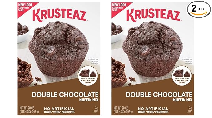 - DOUBLE CHOCOLATE DECADENCE: The Krusteaz Double Chocolate Muffin hype is real. Take just one bite of these deliciously decadent muffins, and you’ll see why we’re the #1 Premium boxed muffin brand in the United States.