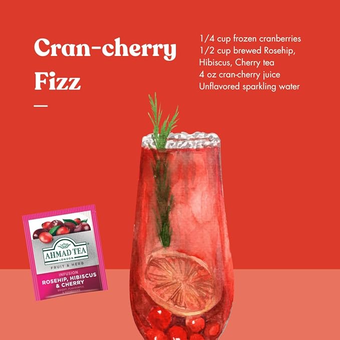 - DELICIOUS & SATISFYING FLAVOR – Ahmad Tea earned 22 Great Taste Awards, Rosehip, Hibiscus, and Cherry Infusion being best-selling herbal tea. A delicious fruity and floral brew.