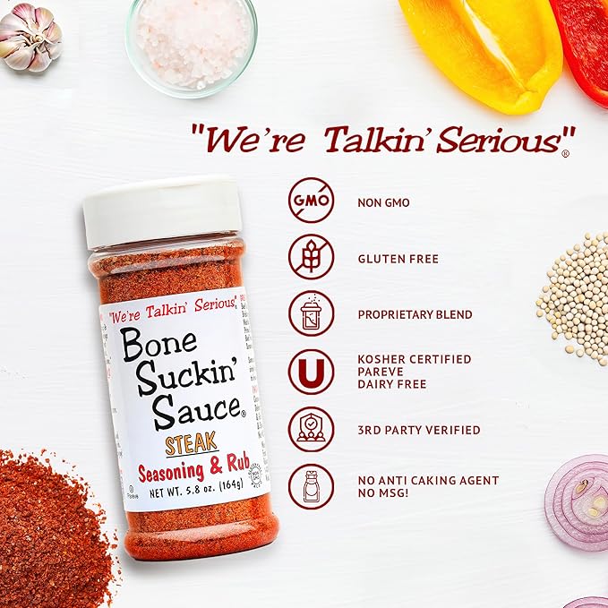 - TURN YOUR HOME INTO A STEAKHOUSE: Our Bone Suckin' Steak Seasoning and Rub's perfect combination of seasonings and spices is all you need to bring out the great flavor in your favorite steak or veggies. Use amply for that Bone Suckin' flavor!