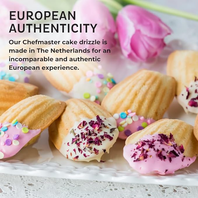 - With over 85 years of experience in coloring food products and overall, 120 years in the bakery industry, we pride ourselves on formulating the best blends and touring the globe on your behalf to source the best quality decorating products to meet your one-of-a-kind creativity; our Chefmaster cake drizzle is made in The Netherlands for an incomparable and authentic European experience