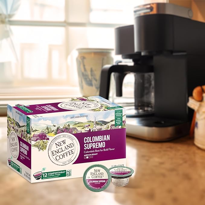 New England Coffee Colombian Supremo Medium Roast Single Serve Pods, 12ct Box (Pack of 1)