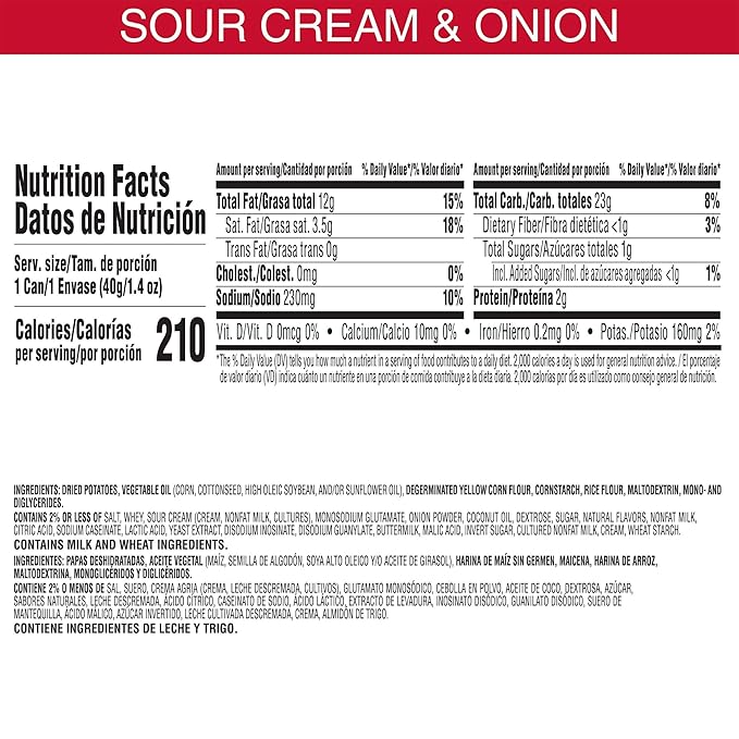 - Pop open a can and experience the bold flavor and satisfying crunch of Sour Cream and Onion Flavored Pringles Potato Crisps