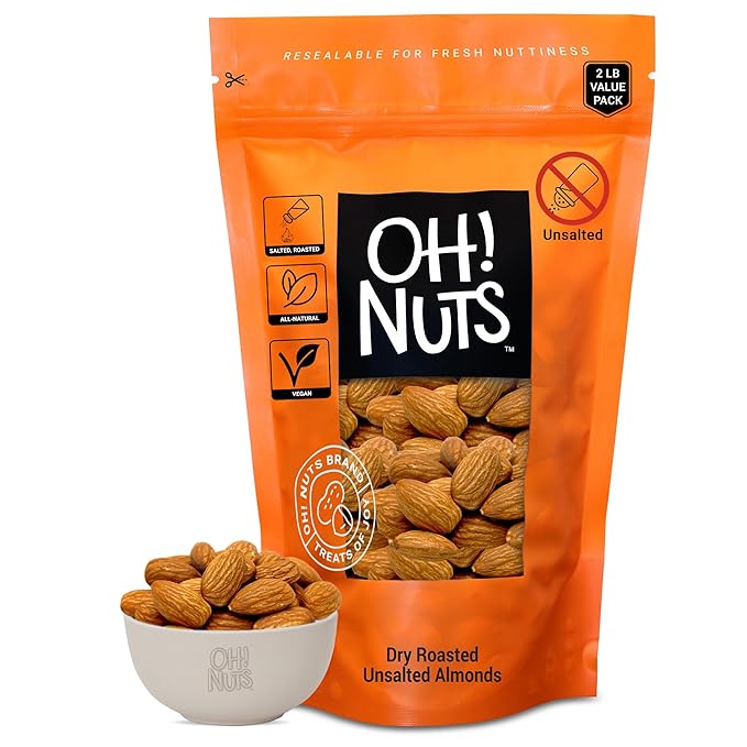 Oh! Nuts Almonds - Roasted Unsalted - 2 lb - Packed in New York Zip-Seal Bag for Exceptional Freshness