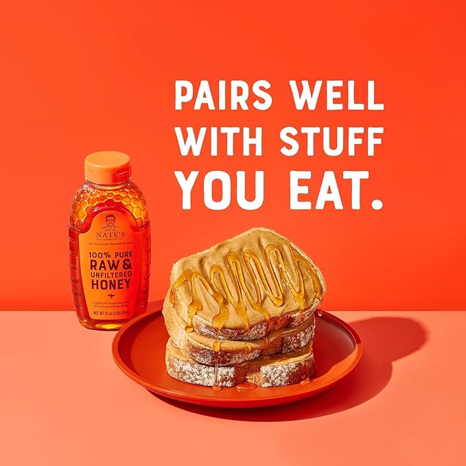 - DAILY DRIZZLE: Enjoy Nate's 100% Pure, Raw & Unfiltered Honey on anything needing a little natural sweetness – morning coffee or tea, oatmeal, yogurt – or as a better-for-you sweetener in baked goods.