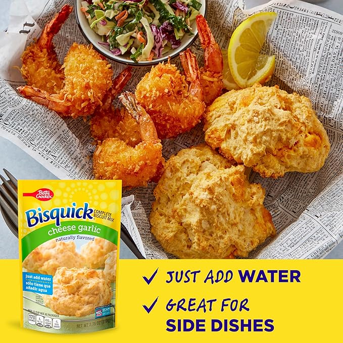 - QUICK AND EASY: Prepare cheese garlic biscuits without the mess; just add water, stir and bake for a delicious biscuit in just 15 minutes