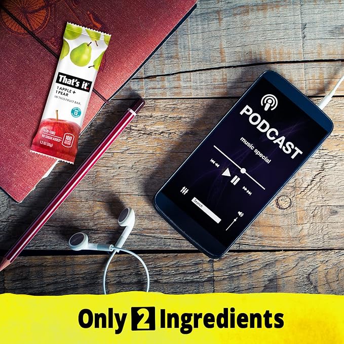 That's it. Apple + Pear 100% Natural Real Fruit Bar, Best High Fiber Vegan, Gluten Free Healthy Snack, Paleo for Children & Adults, Non GMO No Added Sugar, No Preservatives Energy Food (12 Pack)