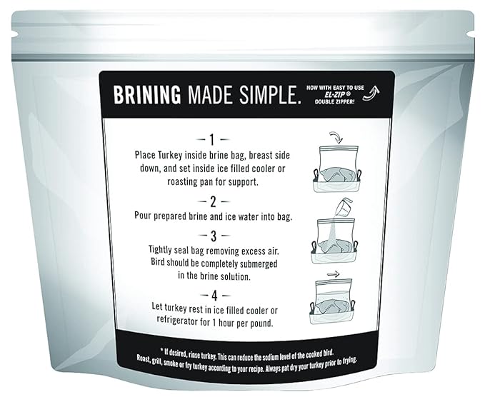 - EASY TO USE DESIGN: Place turkey or other meat or seafood in the bag in a secure location, pour brine solution and ice into the bag, and seal out excess air. Rest in the refrigerator for 1 hour per pound.