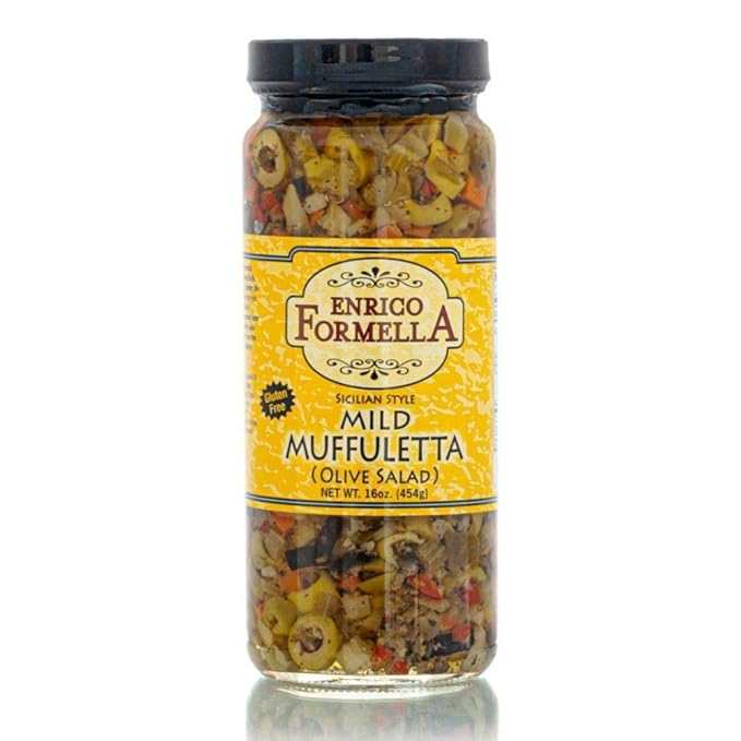 Enrico Formella Mild Muffuletta Salad - Gluten Free Italian Olive Mix - New Orleans Style Sandwich Spread (16 oz)