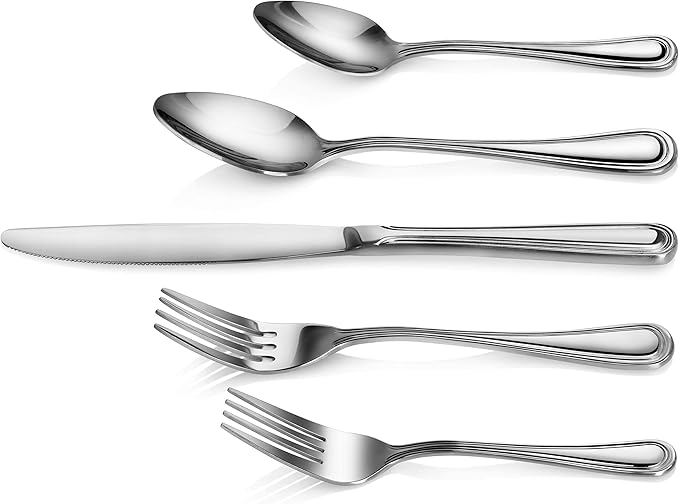 New Star Foodservice 58871 Slimline Pattern, 18/0 Stainless Steel, 60-Piece Flatware Set