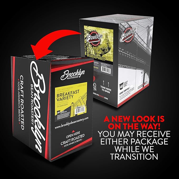 Brooklyn Beans Coffee Pods, Breakfast Gourmet Variety Pack - Compatible with Keurig K Cup Brewers Including 2.0 Machines, 40 Count, Light Roast Selection