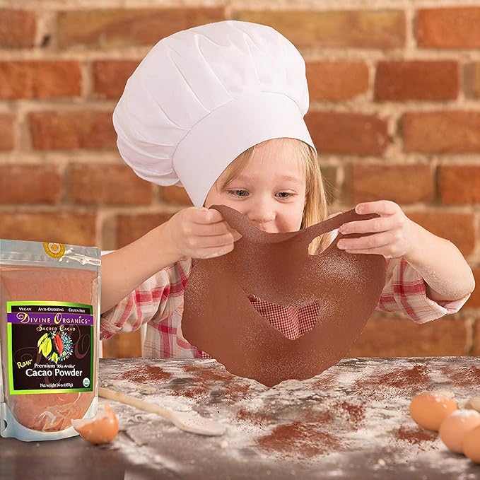 Divine Organics Raw Cacao Powder/Raw Cocoa Powder - Certified Organic - Premium Rio Arriba - Smoothies, Hot Chocolate, Baking, Shakes, Add to Coffee - Rich in Magnesium (16oz)