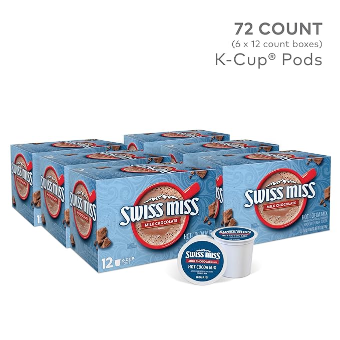 Swiss Miss Milk Chocolate Hot Cocoa, Keurig Single-Serve Hot Chocolate K-Cup Pods, 72 Count
